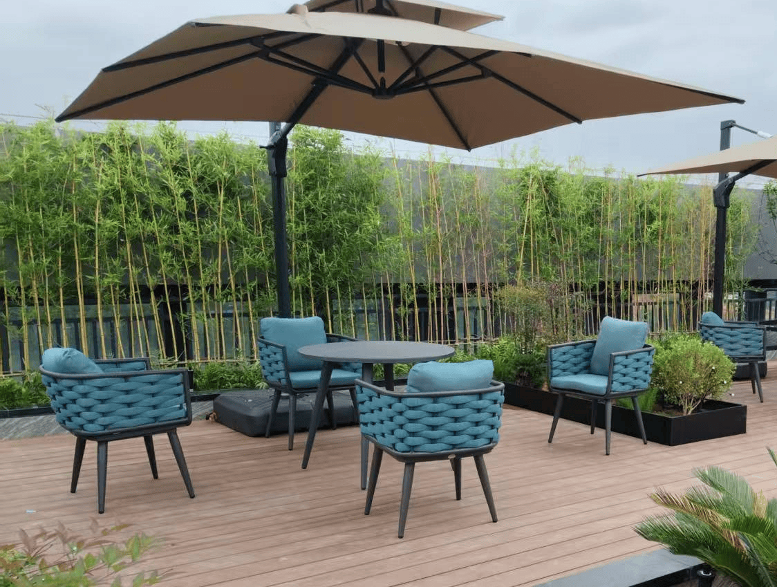 康福特源头工厂的3000平米展厅里,近1000款各类户外家具样品整齐陈列,从藤编休闲椅到实木餐桌,从铝合金躺床到防水布艺沙发,涵盖了不同风格与材质的产品。工厂在了解到别墅项目的需求后,工厂根据庭院的尺寸、朝向、景观布局,以及业主的日常使用习惯。建议选择铝合金仿木纹材质的现代简约风格的户外家具,这种户外家具既保留了实木的自然纹理,又能抵抗雨水阳光。