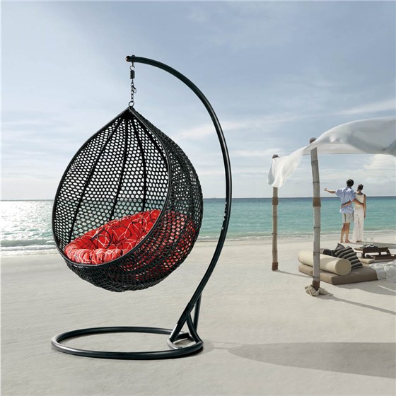 阳台上的藤制吊椅