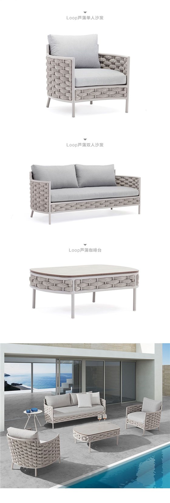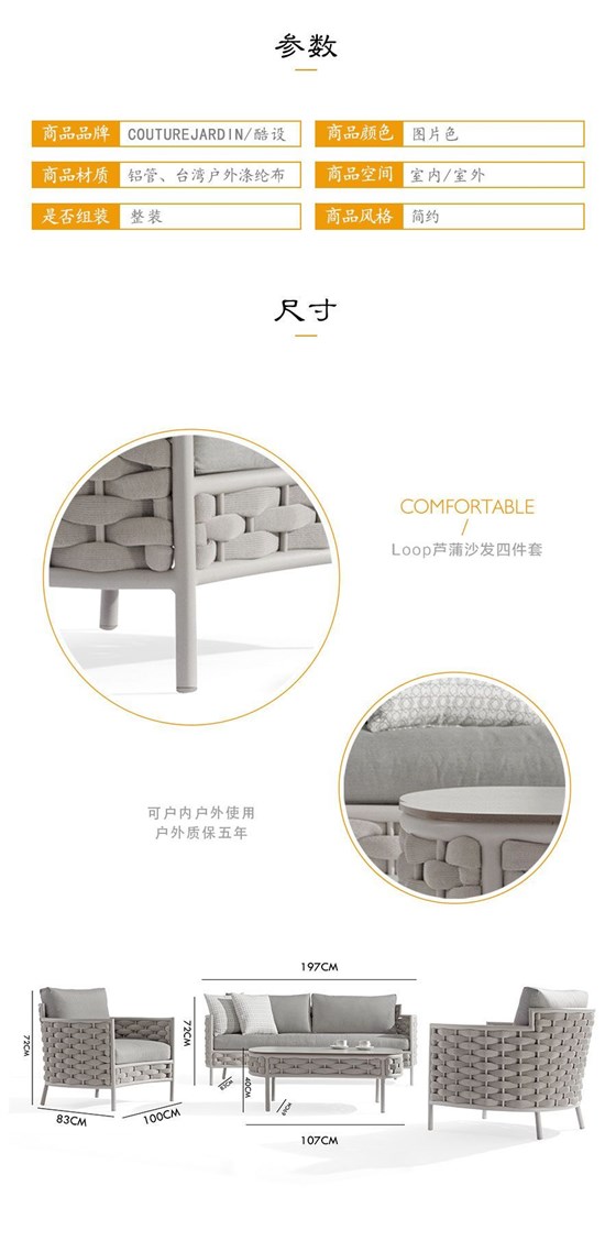 康福特花园休闲沙发Loop芦蒲单人沙发茶几组合套装酷设户外组合沙发时尚户外沙发