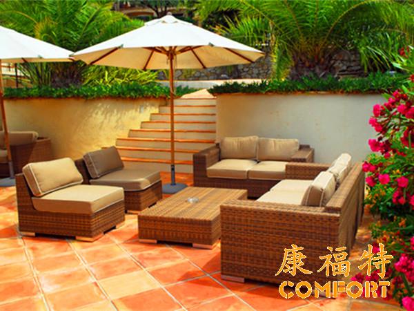 康福特仿藤家具防水防潮,不发霉,寿命长,结实牢固,不易坏,耐磨,防虫。是户外家具的首选!